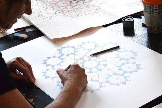 Inspiration for our Sept. 2017 course was drawn from some of the world's finest and most enduring architectural monuments including Mughal Patterns from the Tomb of Itimud ad-Daula, India; Mamluk patterns from Cairo, Egypt; and patterns from the Great Mosque, Damascus, Syria. The constructions that we worked with exemplified the genius, skill and devotion of the geometers and craftsmen